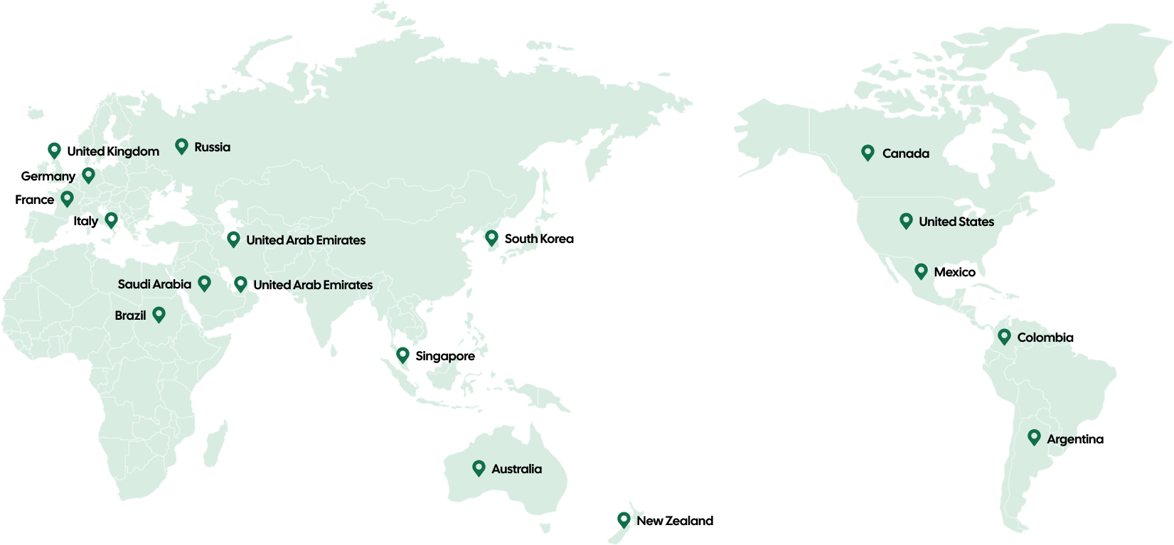مواقع عملائنا حتى الآن، تم تصدير منتجاتنا إلى أكثر من 100 دولة ومنطقة حول العالم، مثل البرازيل والأرجنتين وكولومبيا والمكسيك والولايات المتحدة وكندا وأستراليا ونيوزيلندا وألمانيا وفرنسا وإيطاليا والمملكة المتحدة وروسيا والمملكة العربية السعودية والإمارات العربية المتحدة وسنغافورة وكوريا الجنوبية، إلخ.